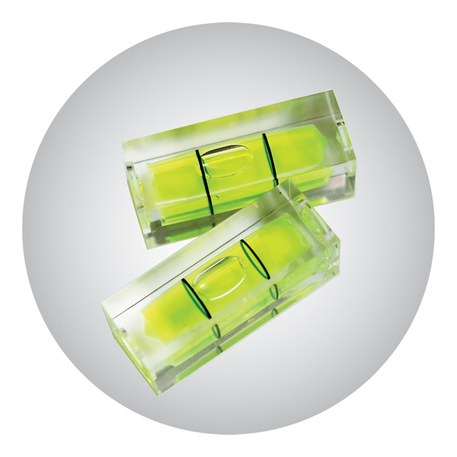 - Fioles à bulles en matériau acrylique antichoc calibrées avec une précision maximale à 0,5 mm/m (0,029°)