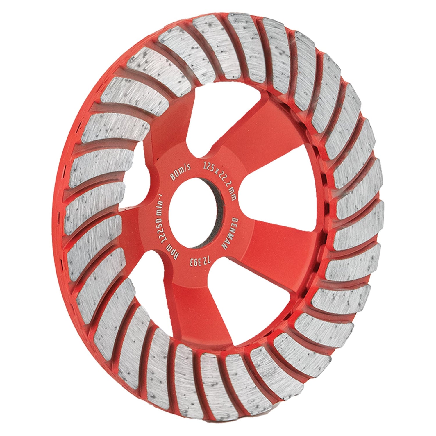 Disque diamanté pour béton dur Benman Turboréacteur, idéal pour le lissage de surface sur supports minéraux. Avec 2 jeux de segments diamantés, il offre des performances de fonctionnement nettement plus silencieuses, une durée de vie plus longue et un motif de meulage plus attrayant.