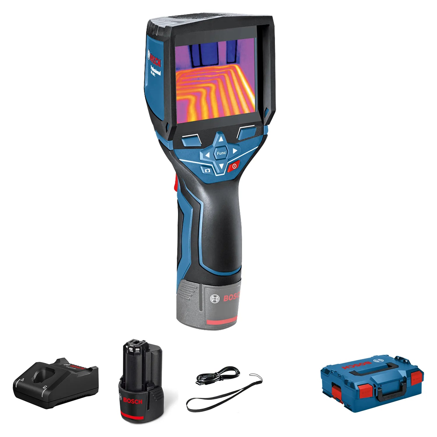 Là Caméra thermique Bosch GTC 400 C 12V C'est le choix parfait pour les installateurs, électriciens et techniciens à la recherche d'un outil professionnel pour l'identification rapide et détaillée des pertes de chaleur, des défauts électriques, des fuites d'eau ou des ponts thermiques.