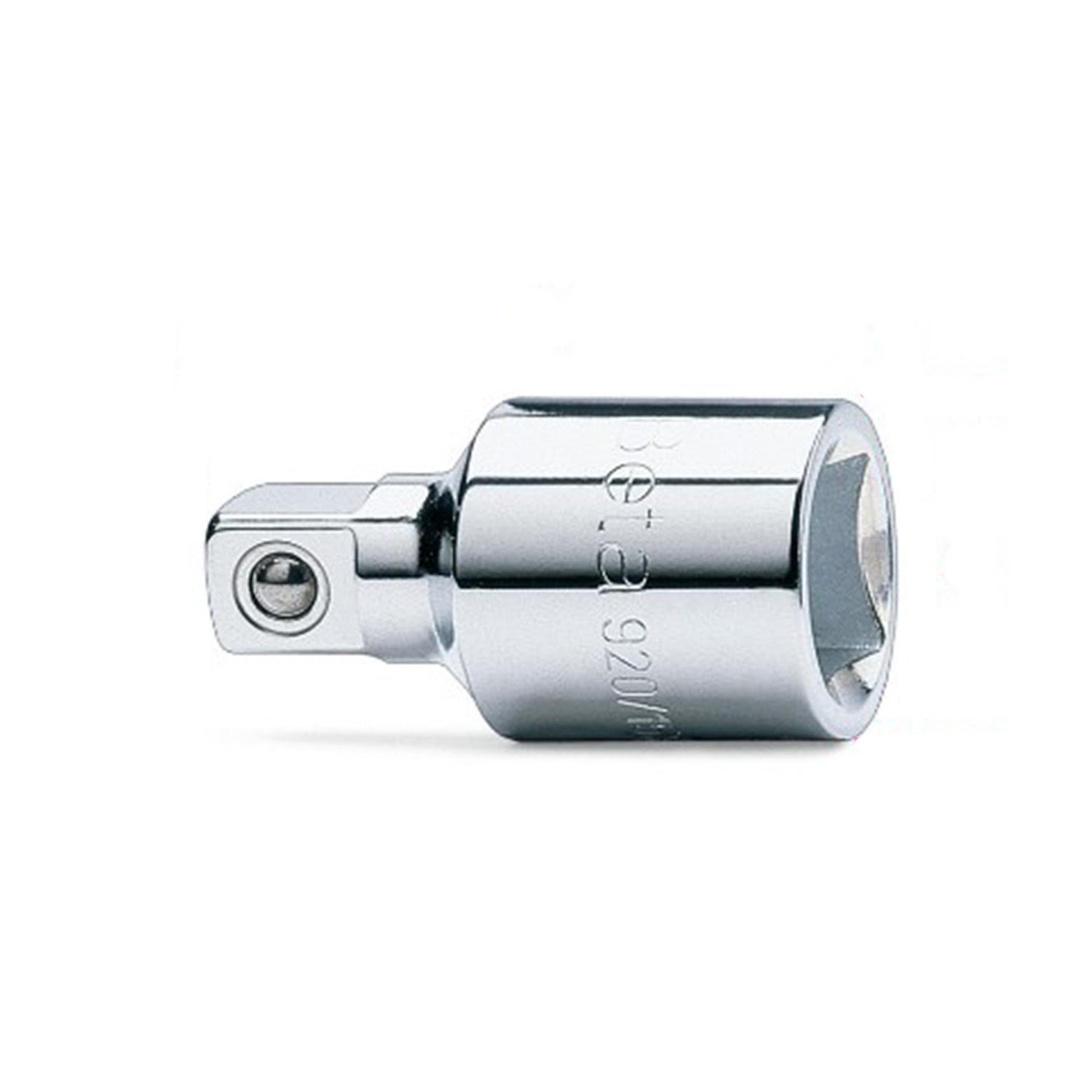 Connexion Beta 920 avec raccord carré femelle 1/2" et raccord mâle 3/8" chromé, fabriqué en acier de haute qualité. Il est absolument nécessaire d'adapter le couple de serrage à la capacité du carré mâle pour éviter les casses ou dommages accidentels.