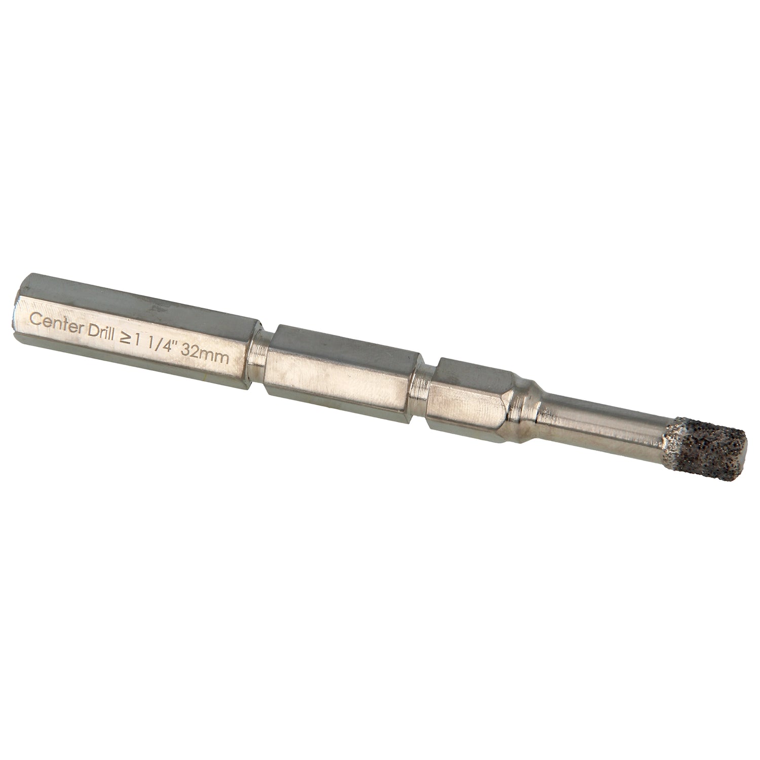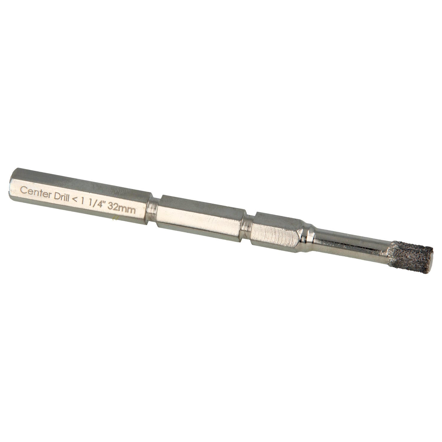 Pointe de centrage ProFit Hex avec tige hexagonale Click & Drill pour fraises de 18 à 30 mm Pour une utilisation dans les carreaux de céramique, le grès cérame, le granit et le marbre. Pré-percez un trou avec un diamant sec de 6 mm pour guider le foret de centrage lisse.