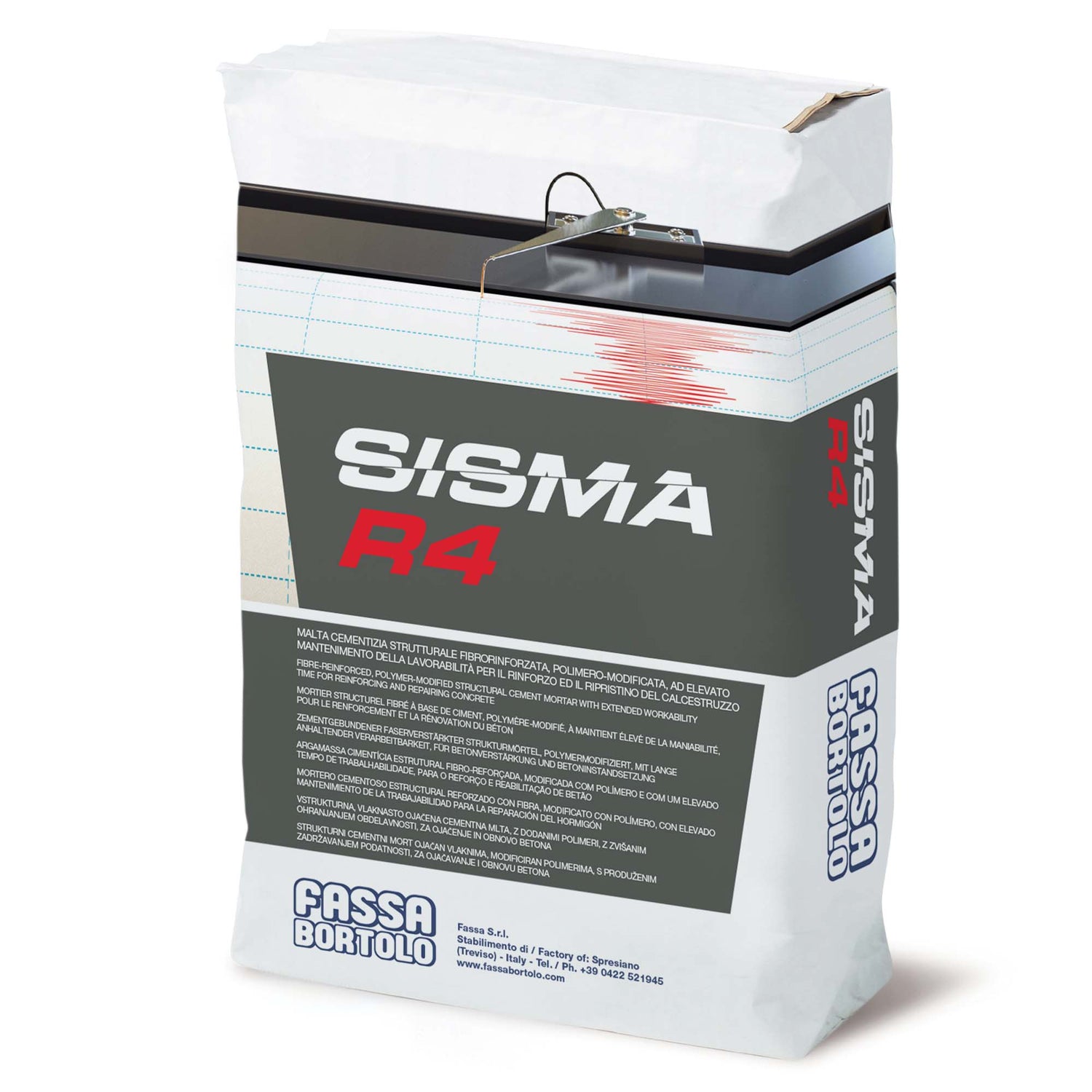 Malte structurelle Tremblement de terre de Fassa R4 25 kg est un polymère modifié et renforcé de fibres à haute adhérence spécifique comme matrice inorganique pour les systèmes FRCM.