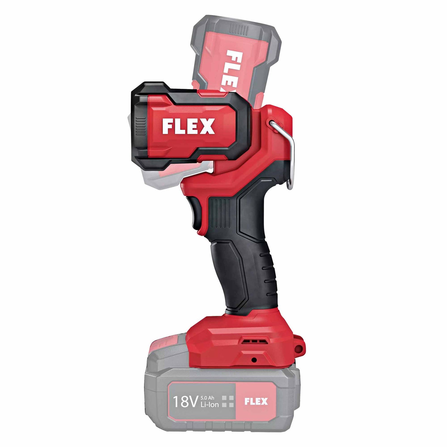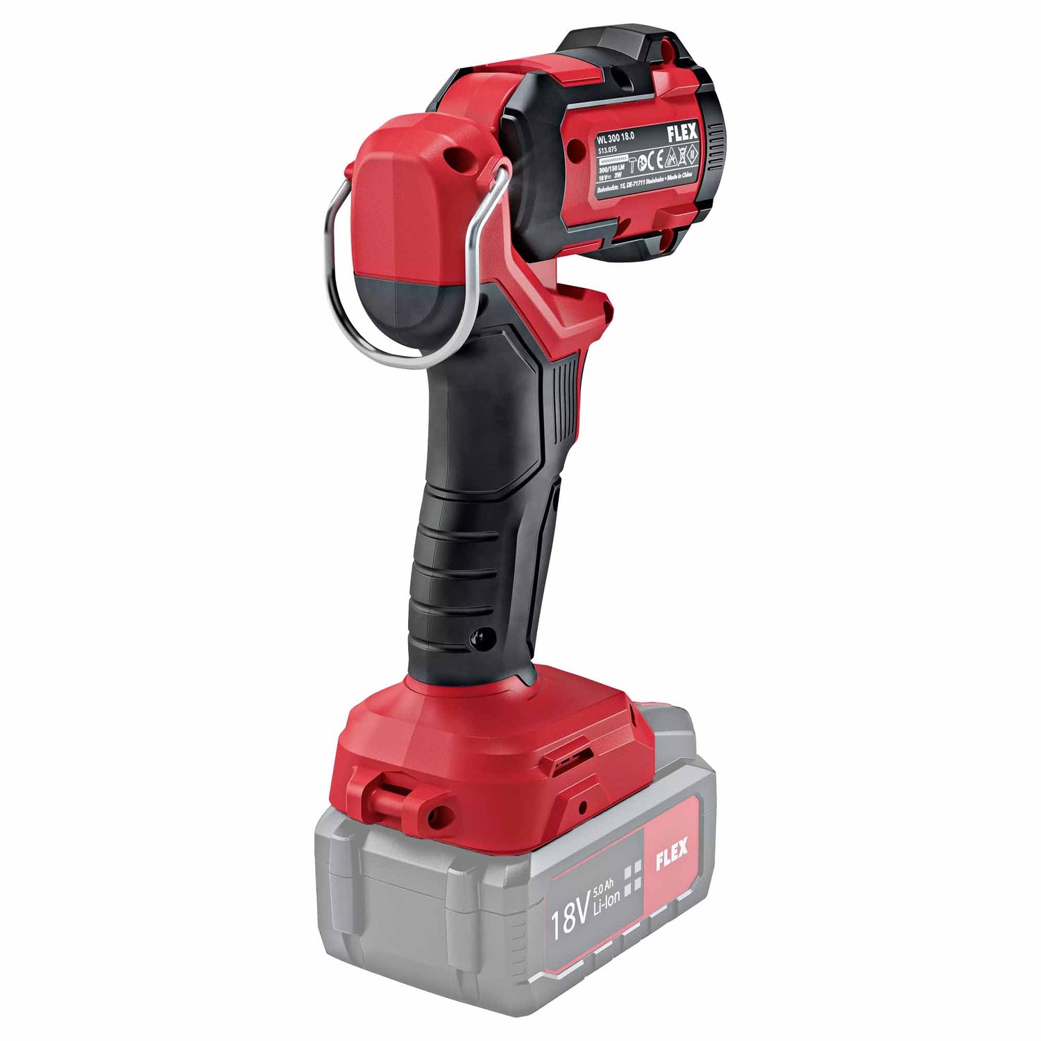 LED-lamp Flex WL300 18.0V-spanningKrachtige LED-projector op batterijen met 2 helderheidsniveaus, 300 en 150 lumen. De LED-lampkop kan 104° worden gedraaid. Zo is de werkplek altijd optimaal verlicht.