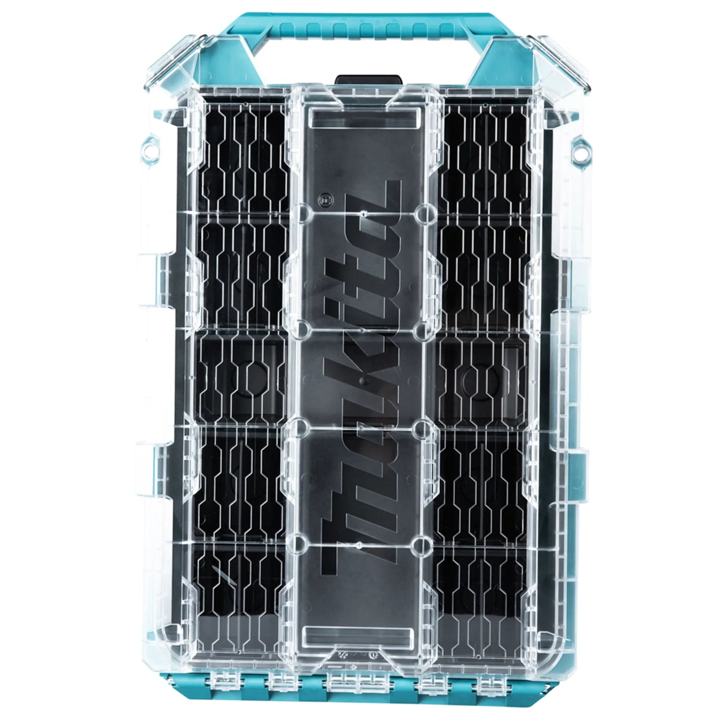 De organisatormodule Makita De P-91051 wordt gebruikt voor het organiseren, vervoeren en beschermen van kleine en grote accessoires. Dankzij het transparante deksel en het lage profiel, dat geoptimaliseerd is voor stapelen, is de inhoud direct zichtbaar.