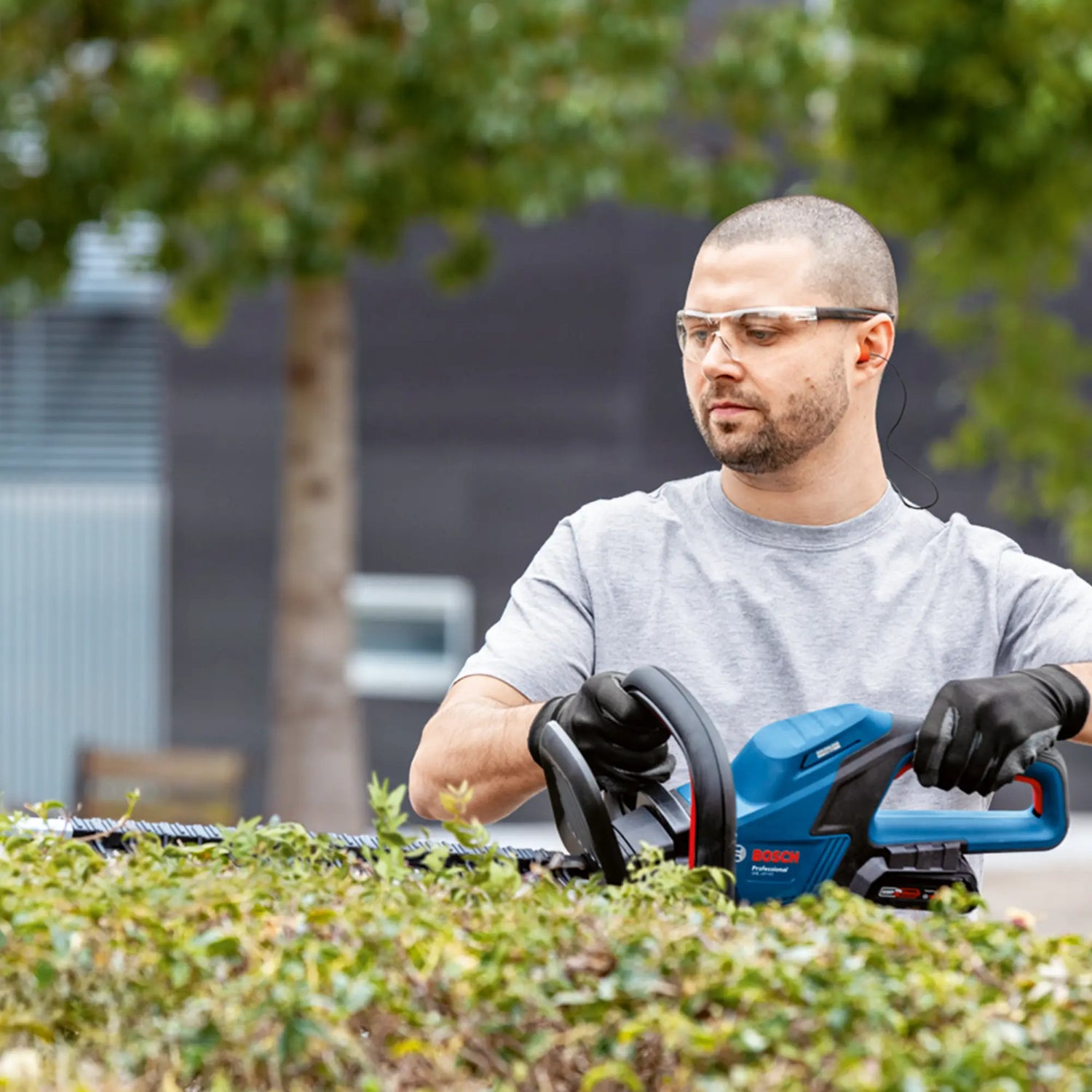 Le taille-haie Bosch GHE 18V-60, avec une conception ergonomique offrant d'excellentes performances de coupe et une maniabilité optimale.