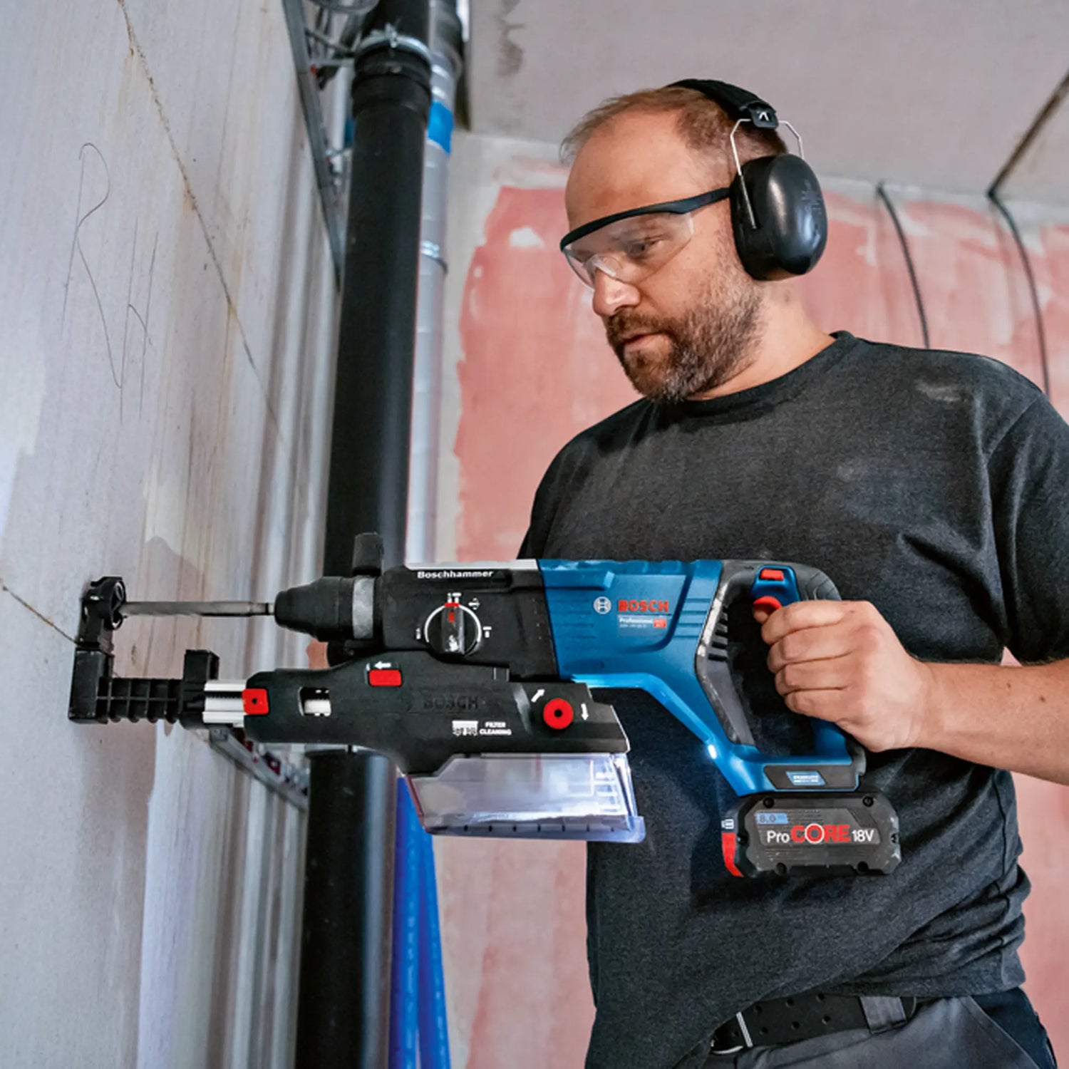 • Compatibilité avec les systèmes d'aspiration:Il est compatible avec l'extracteur de poussière GDE 28 D en option, qui permet un perçage sans poussière, gardant la zone de travail propre.