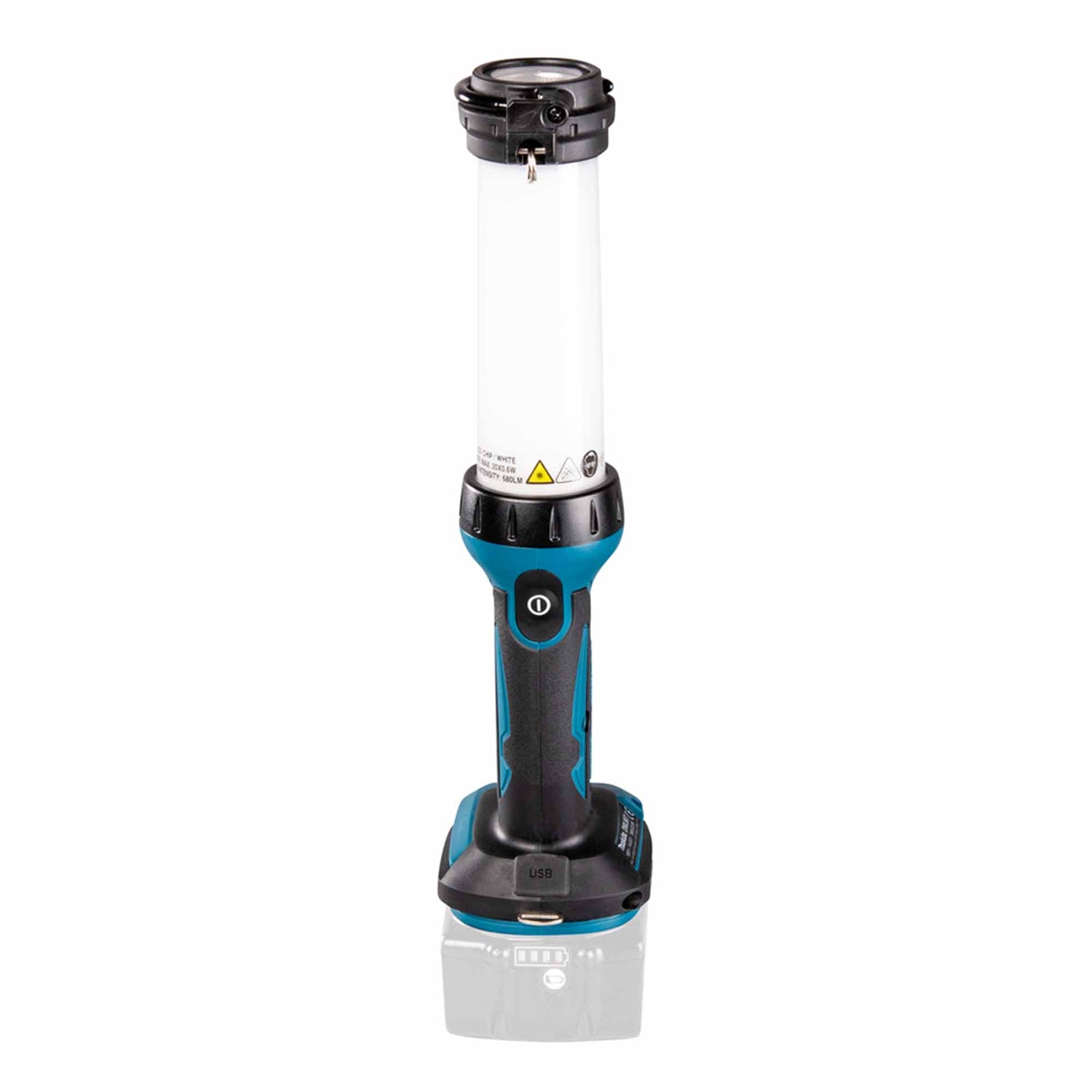 La torche LED Makita DÉCDML807 Lampe tube 18V, puissante avec trois modes d'éclairage et connexion USB. Une lampe pour batteries LXT® 14,4 V et 18 V avec trois modes d'éclairage et une connexion USB.