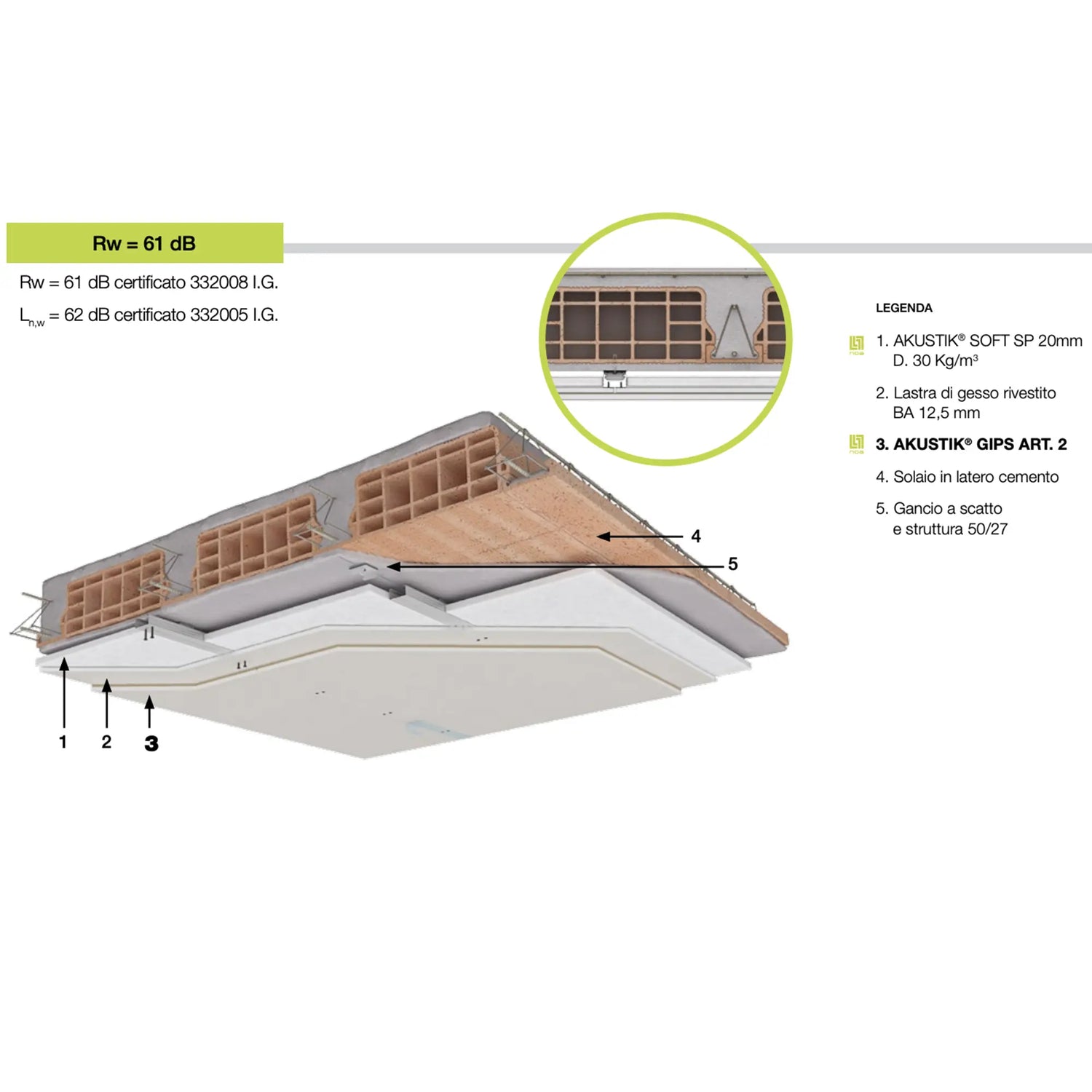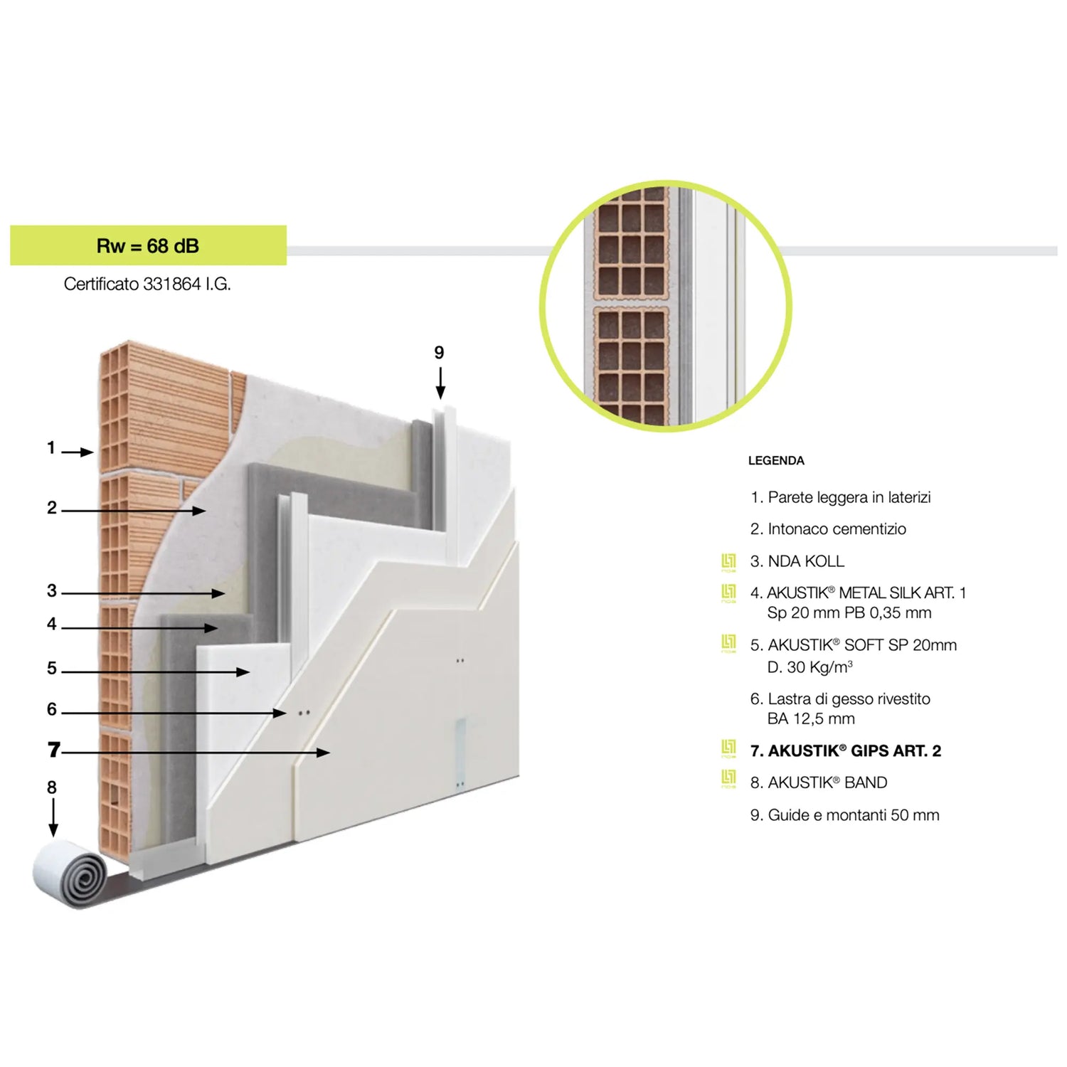 Le panneau couplé Nda Akustik Gips Art2 Il est vendu en feuilles de 120x200, couplé à une isolation acoustique.