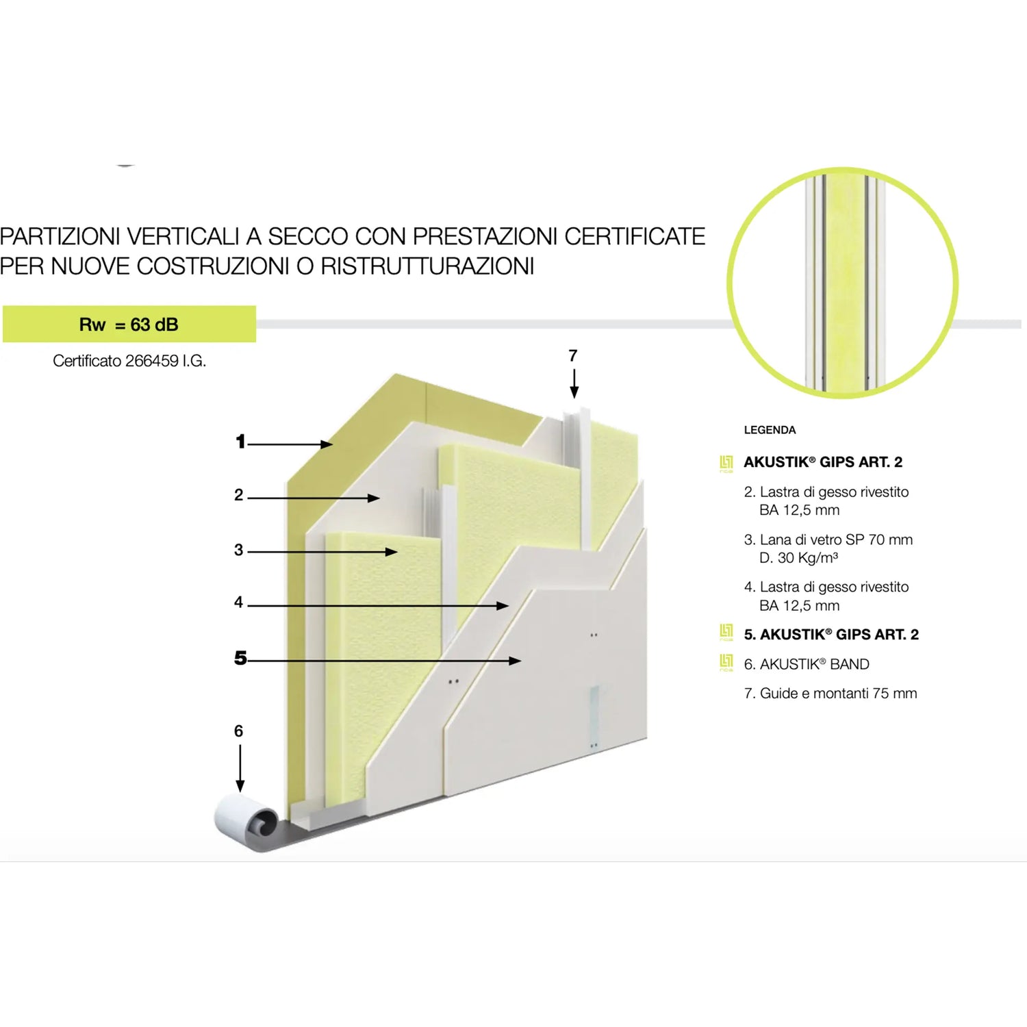Le NDA Akustik Gips Art2 Panneau couplé C'est la solution idéale pour obtenir hautes performances d'isolation acoustique dans les murs en plaques de plâtre, les faux murs et les faux plafonds. Ce produit spécial plaque à double couche Il est composé d'un panneau en plaques de plâtre de 12,5 mm couplé à un Masse insonorisante et antivibratoire TECSOUND® EPDM 2,5 mm, avec une densité de 5 kg/m².