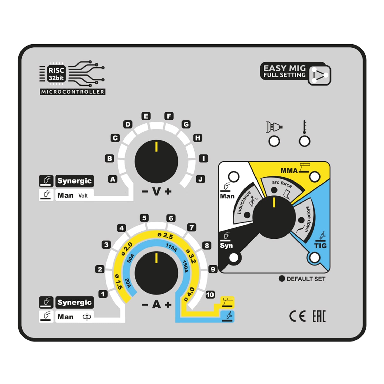 Installation de soudage Deca MIGA 218, L'interface exclusive MIG FACILE COMPLET LE RÉGLAGE vous permet de souder en MIG Synergique / MIG Manuel / FIL Sans Gaz / MMA / TIG Lift.