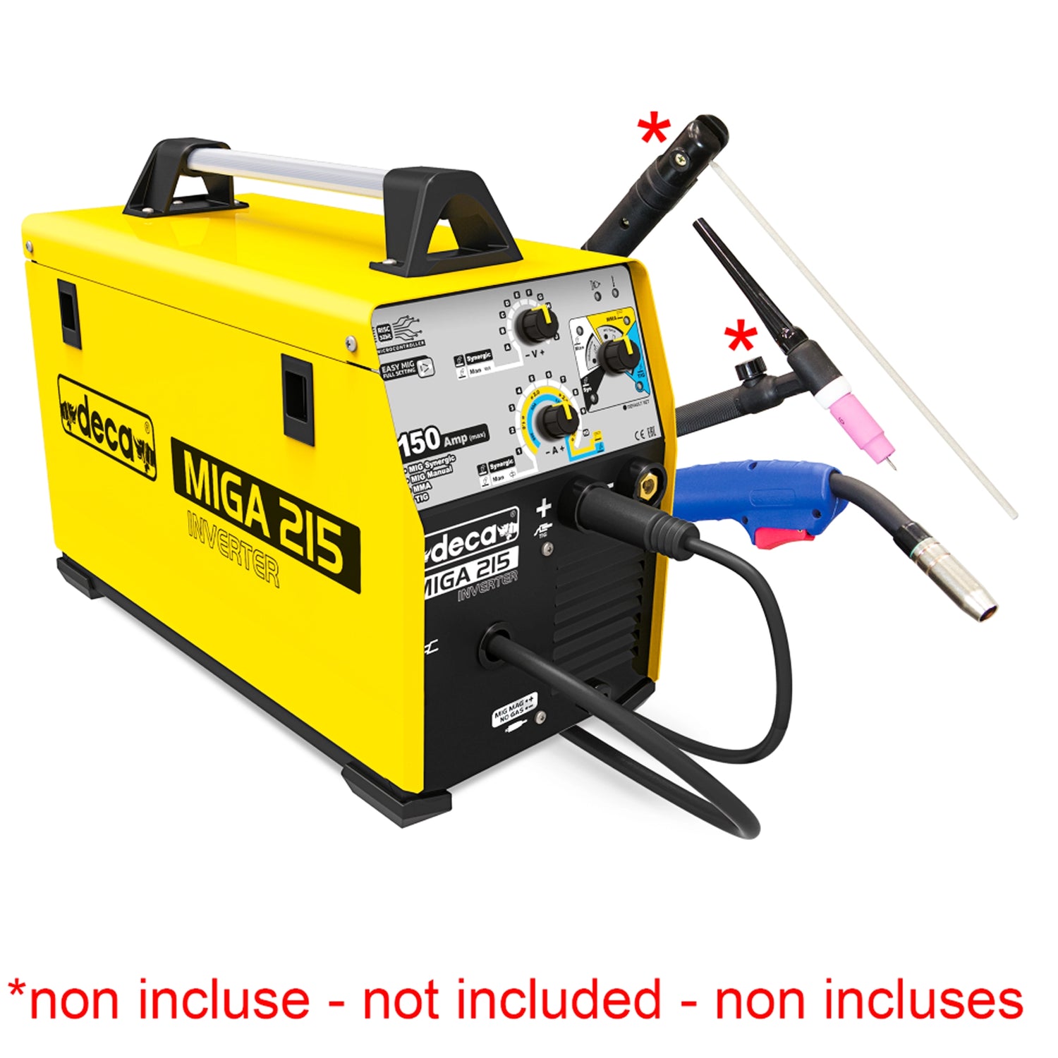 Soudeur Deca MIGA 215, MIG/MAG, NO-GAS, MMA, TIG 1Ph - 230V 50/60 Hz. Soudage MIG synergique "EASY MIG".