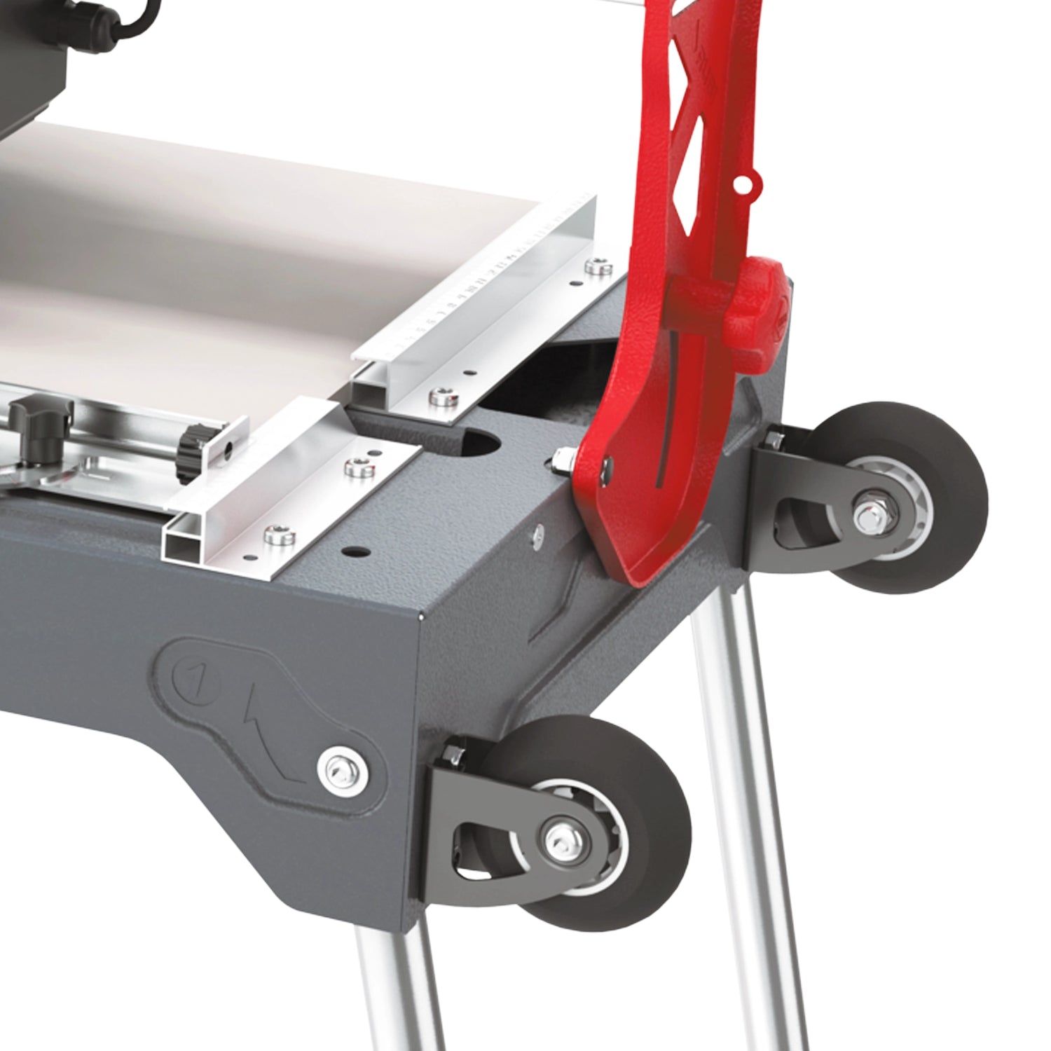 • Facilité de transport:Les pieds pliables et les roues intégrés rendent la scie extrêmement facile à transporter et à manipuler.