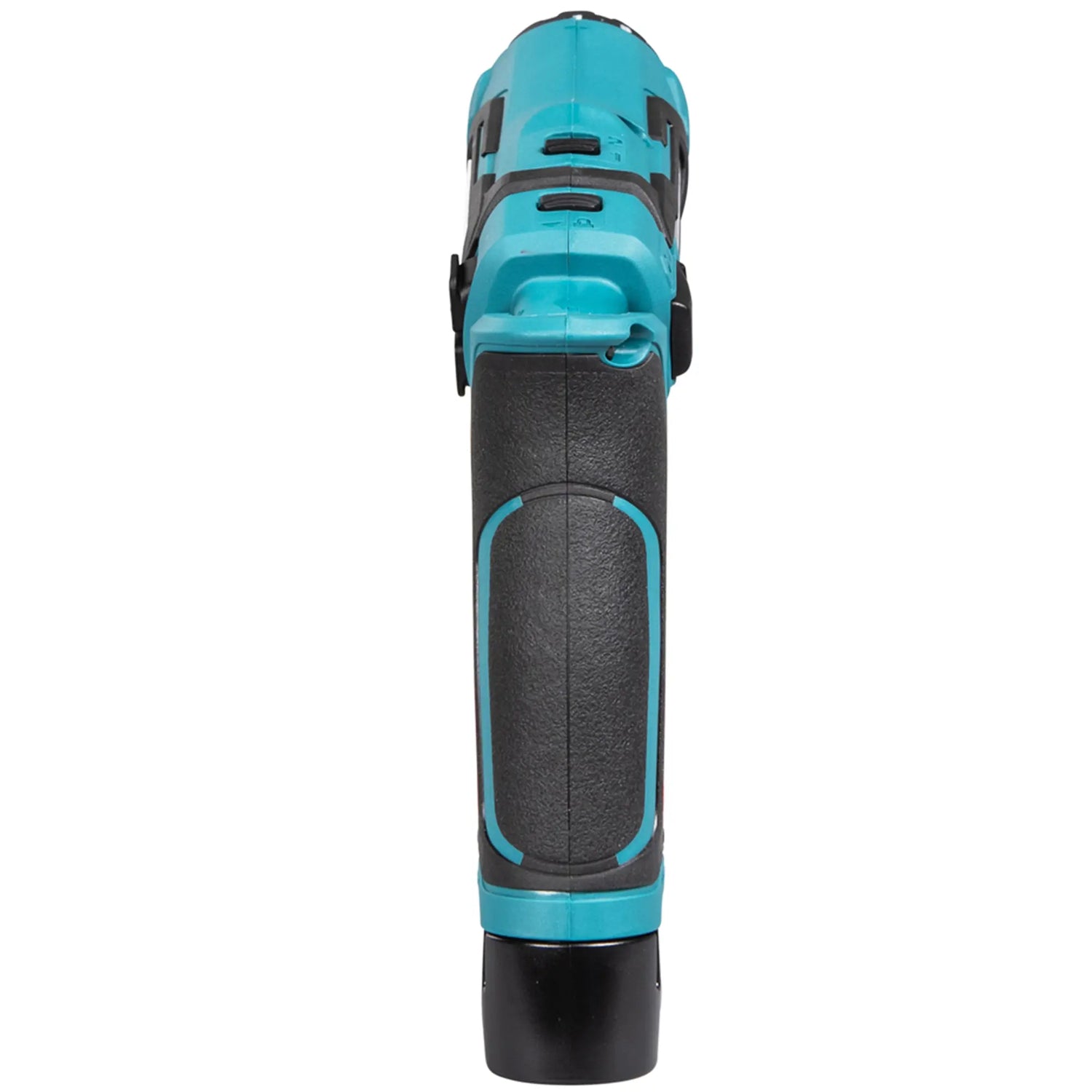 Tournevis Makita DF012DSJ L'outil sans fil 7,2 V 1,5 Ah est extrêmement compact et léger, conçu pour les travaux de vissage et de fixation dans des espaces restreints ou avec peu de place pour manœuvrer.