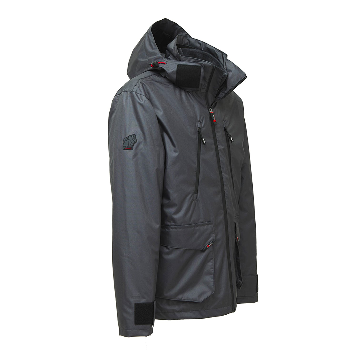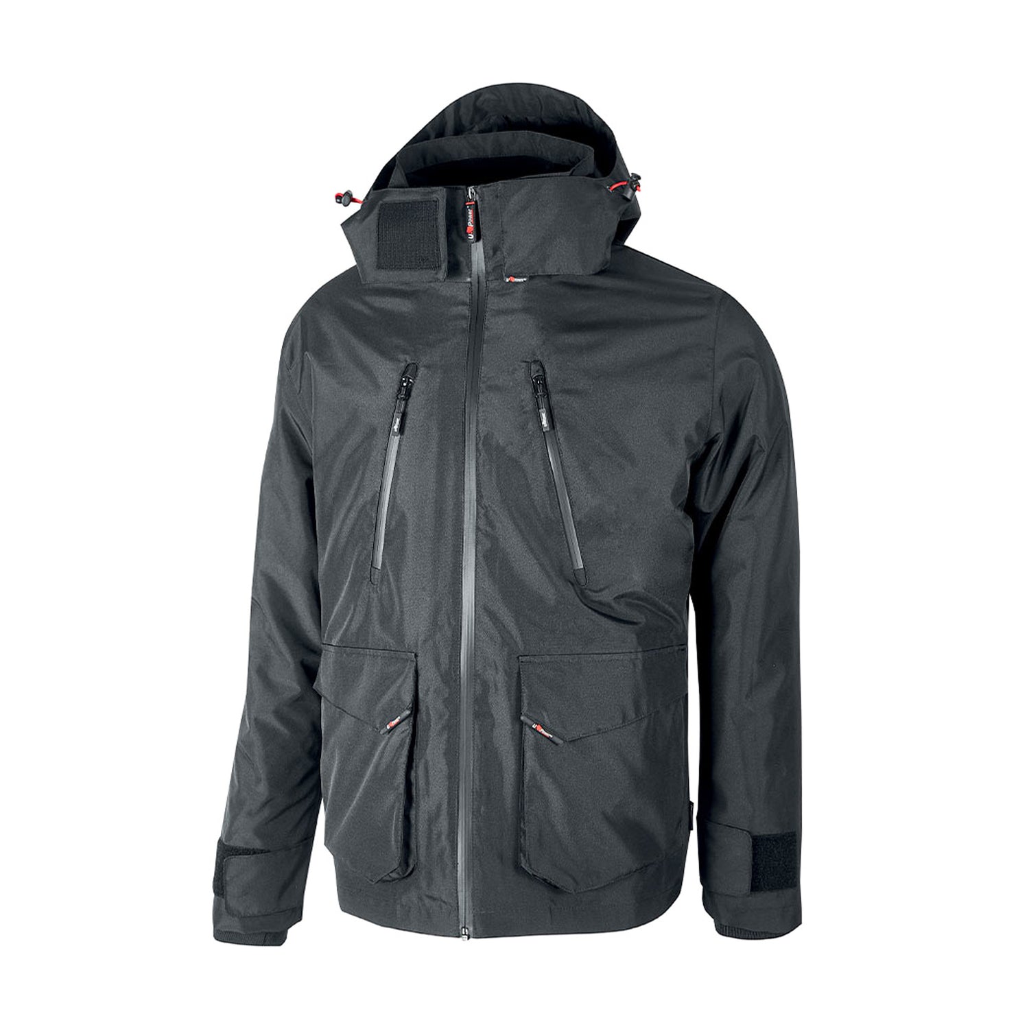 Veste U-Power Forex, parka de pluie imperméable et respirante. 2 grandes poches devant appliquées sur le bas avec rabat et velcro, 2 poches poitrine avec zip déperlant.