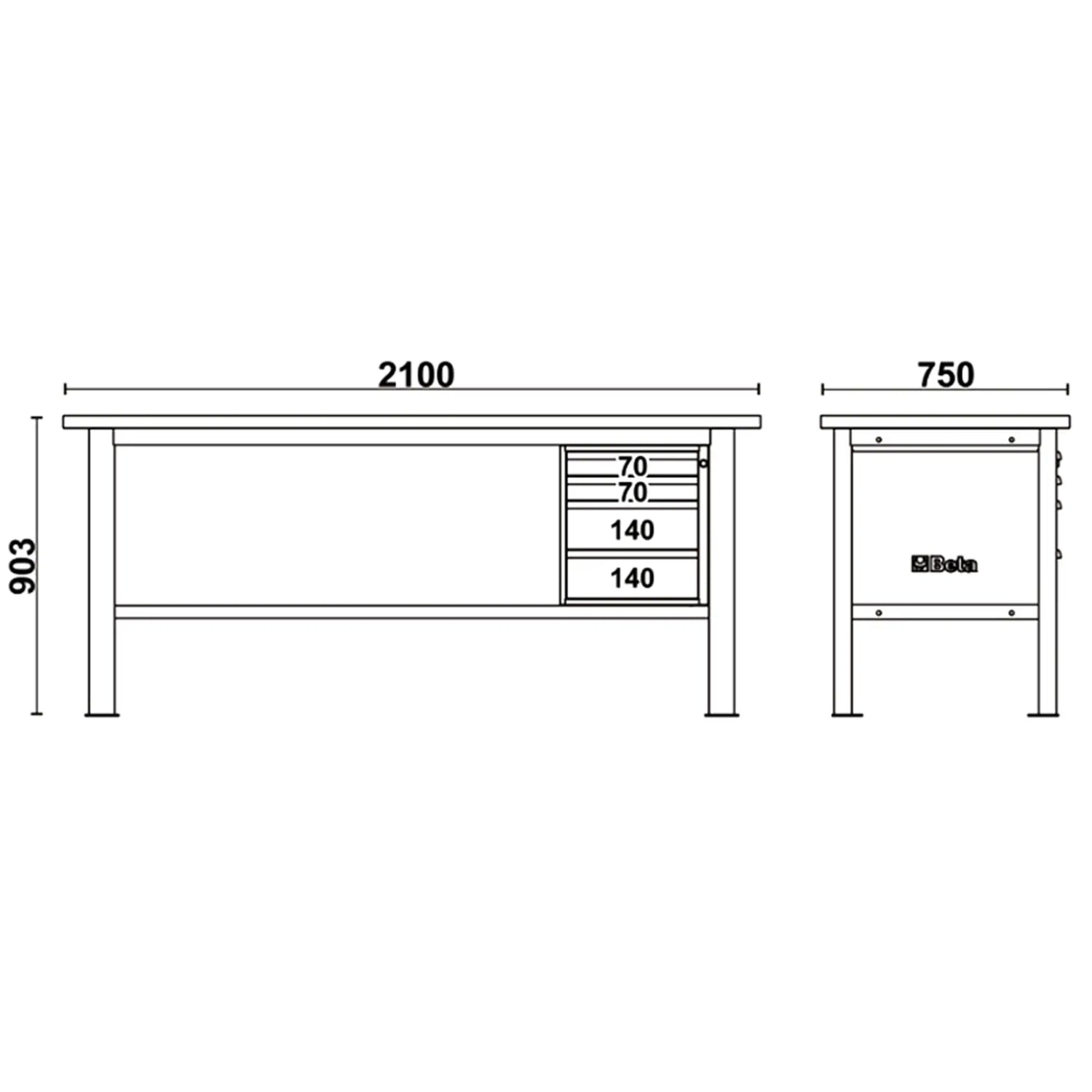 De Beta De C58BC-X2,1 4C is ontworpen om een complete, stabiele en georganiseerde werkplek te creëren. Dankzij het 38 mm dikke, met roestvrij staal gecoate MDF-blad, het stalen frame en de 4 laden op kogelgelagerde telescopische geleiders kunt u er zelfs aan zware mechanische onderdelen werken en gereedschap en persoonlijke beschermingsmiddelen georganiseerd en beschermd opbergen.