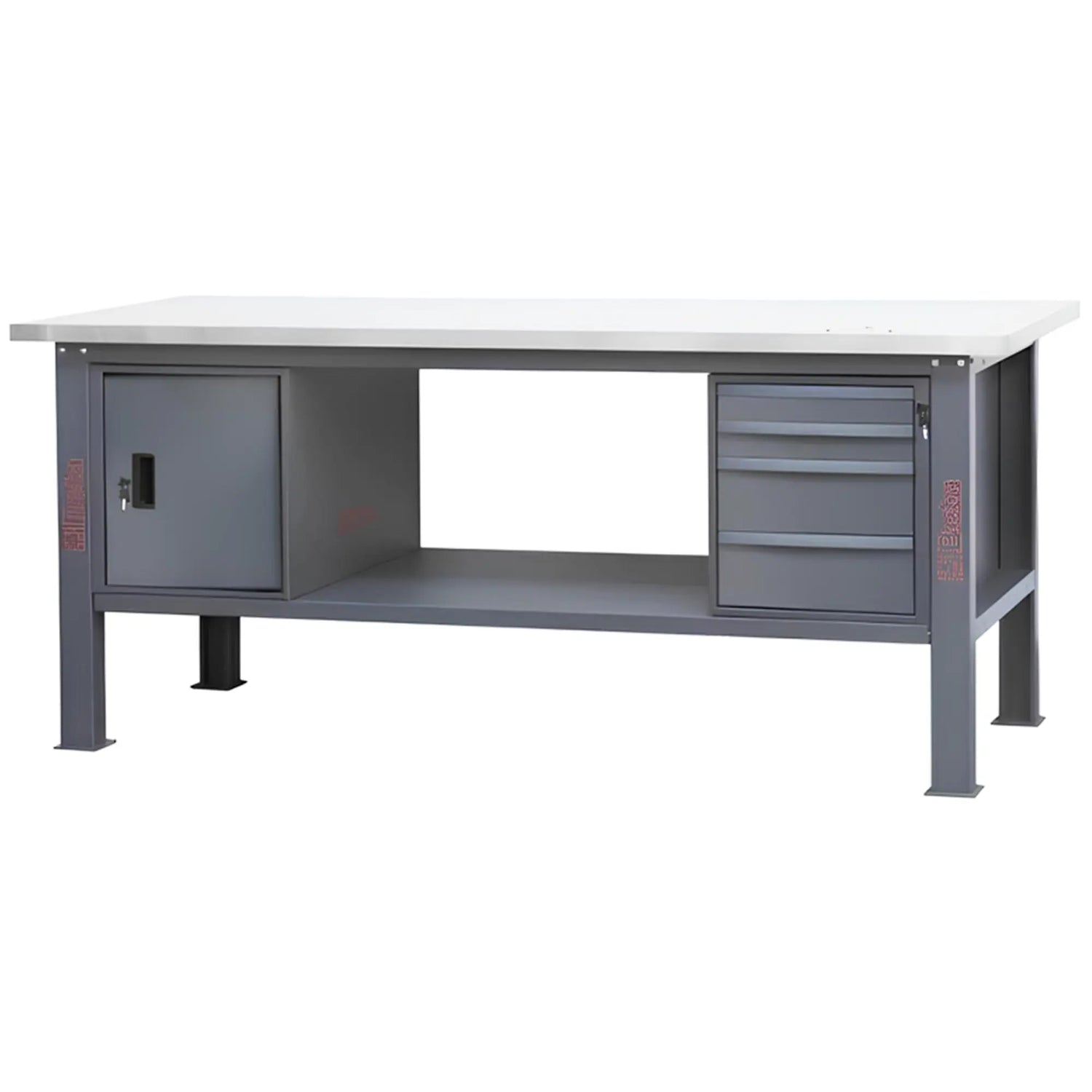 De Beta De C58BC-X2,1 4CA is ontworpen om een complete en functionele werkplek te creëren, met een met roestvrij staal bekleed MDF-blad, 4 laden op kogelgelagerde telescopische geleiders en een kast met een deur. Dankzij de stalen constructie en een draagvermogen tot 800 kg is hij geschikt voor zwaar werk en intensief gebruik.