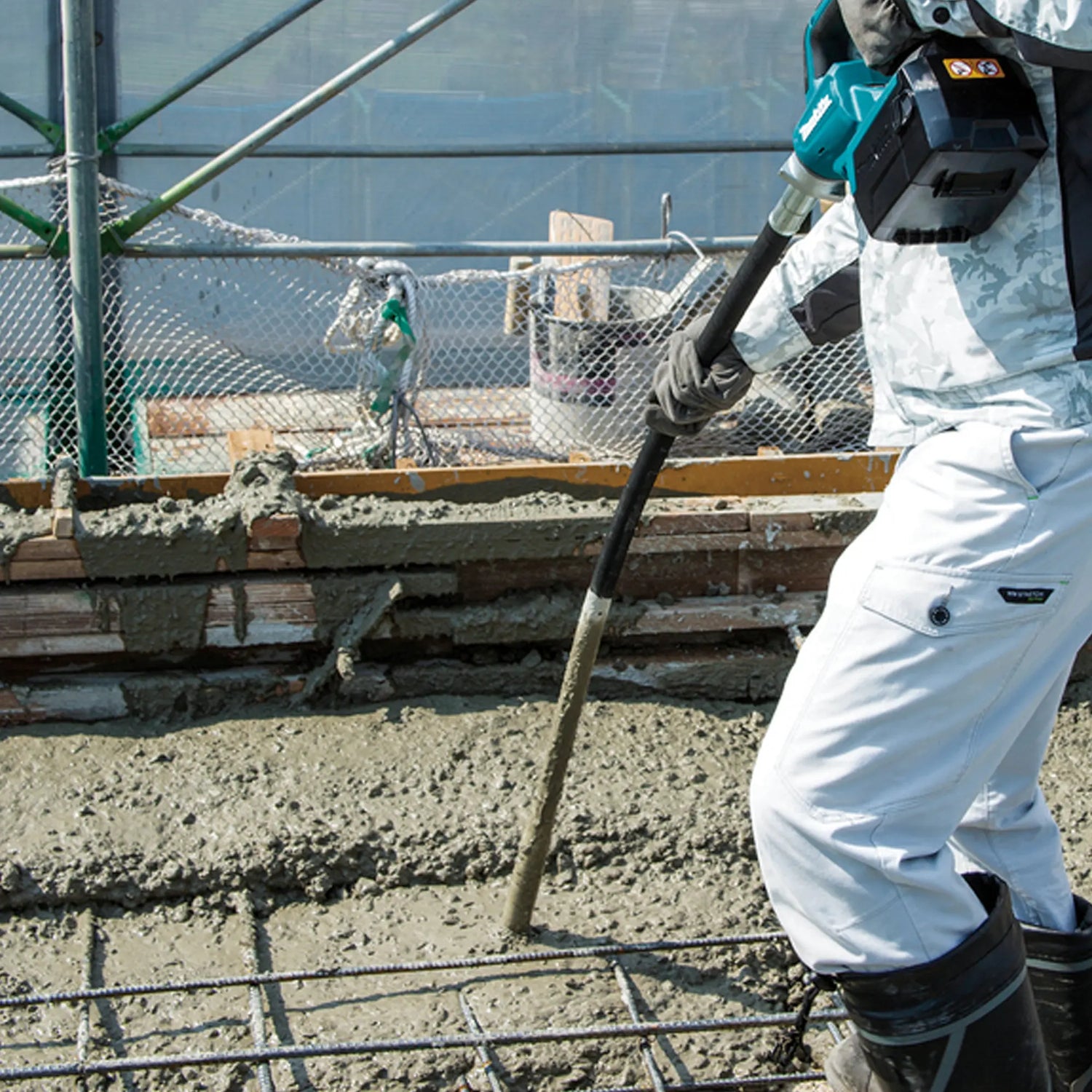 Equipped with drums Makita XGT® 40V 4.0 Ah and charger included, is ready to use to ensure intense vibrations up to 15,500 rounds per minute, improving the compaction and performance of concrete in structural castings.
