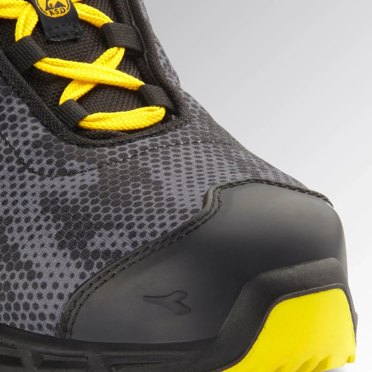 Shoe Diadora Shark Stable Impact Low S3 SRC ESD, low S3 safety shoe in 350 g/m² water-repellent polyester technical fabric with Stable Impact System cushioning technology.