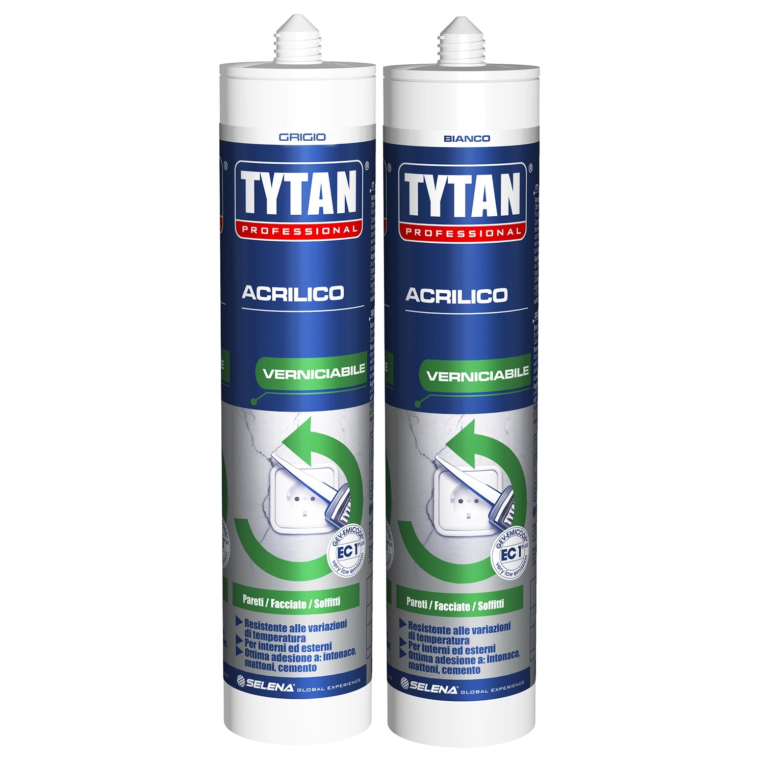 The Silicone Acrylic Tytan Paintable 300 ml It is a versatile and paintable elastic sealant, perfect for joints between building materials, masonry and plasterboard subject to small expansions. TYTAN PROFESSIONAL ACRYLIC It is air-curing and offers an optimal solution for sealing internal and external joints on porous surfaces such as concrete, plaster, brickwork and wood. Thanks to its odorless and easy-to-clean formula, it can be applied precisely without smudging.