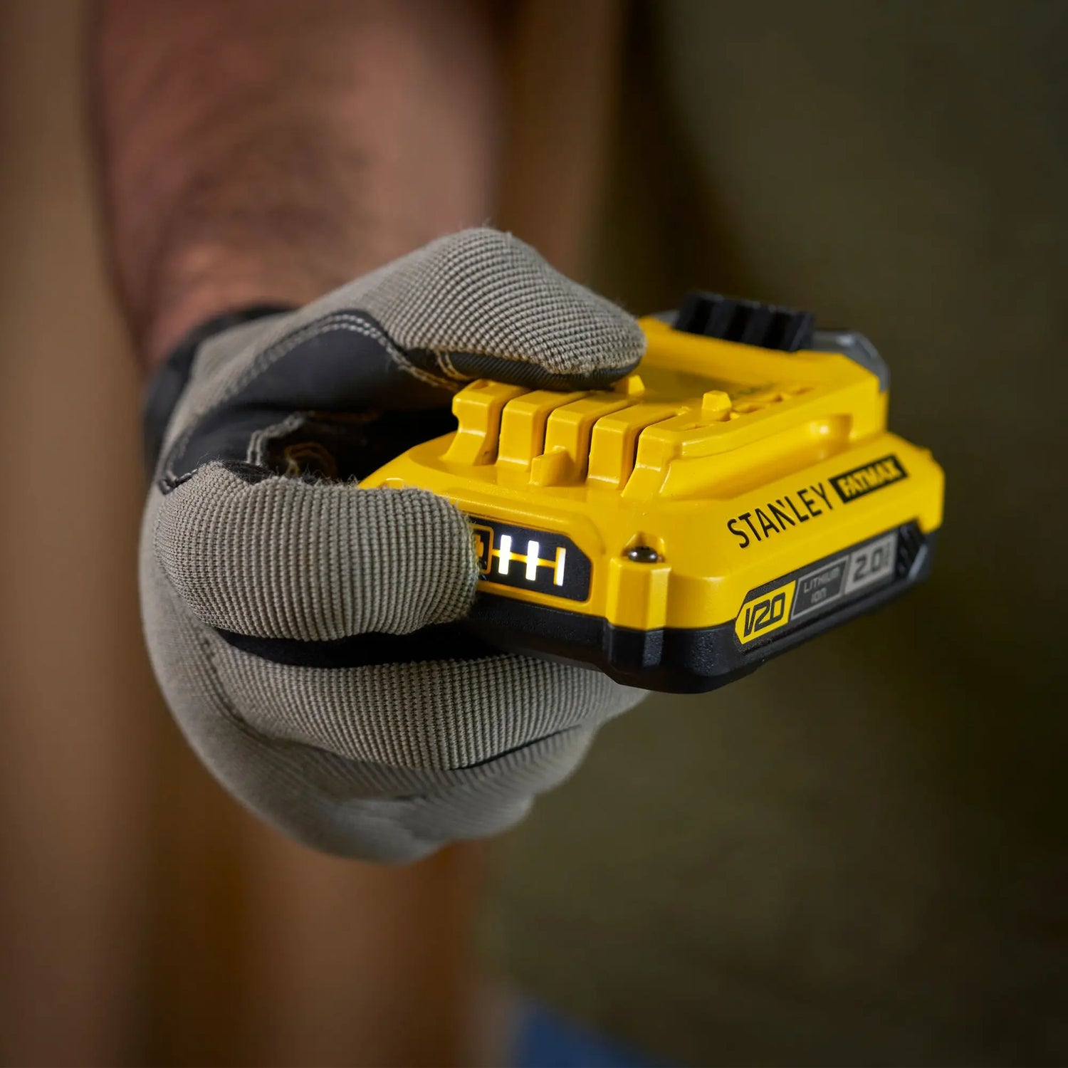 Kit Energy Stanley SFMCB12D2-QW 18V 2Ah con indicatore di carica integrato.
