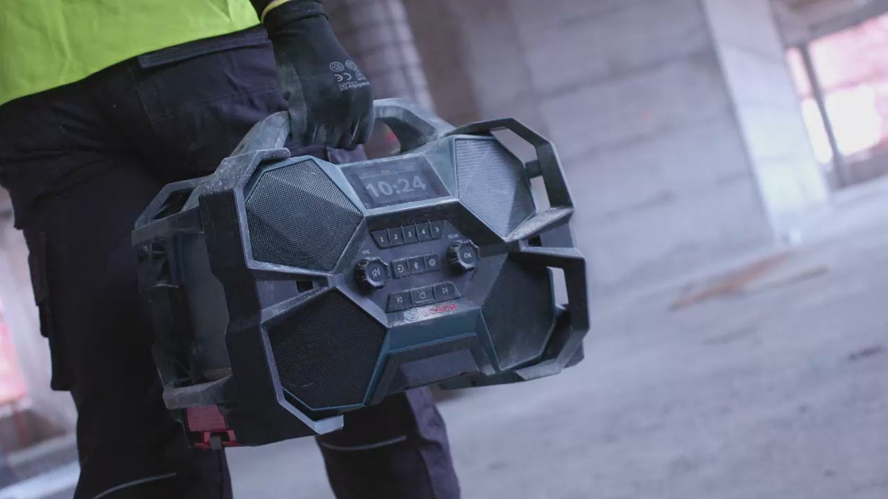 Het wordt gebruikt om op de bouwplaats of in de werkplaats naar muziek en nieuws te luisteren via DAB+ en FM-radio of Bluetooth en AUX-aansluiting, waardoor het bedieningscomfort en de dagelijkse productiviteit worden verbeterd. kwalitatief luisteren.