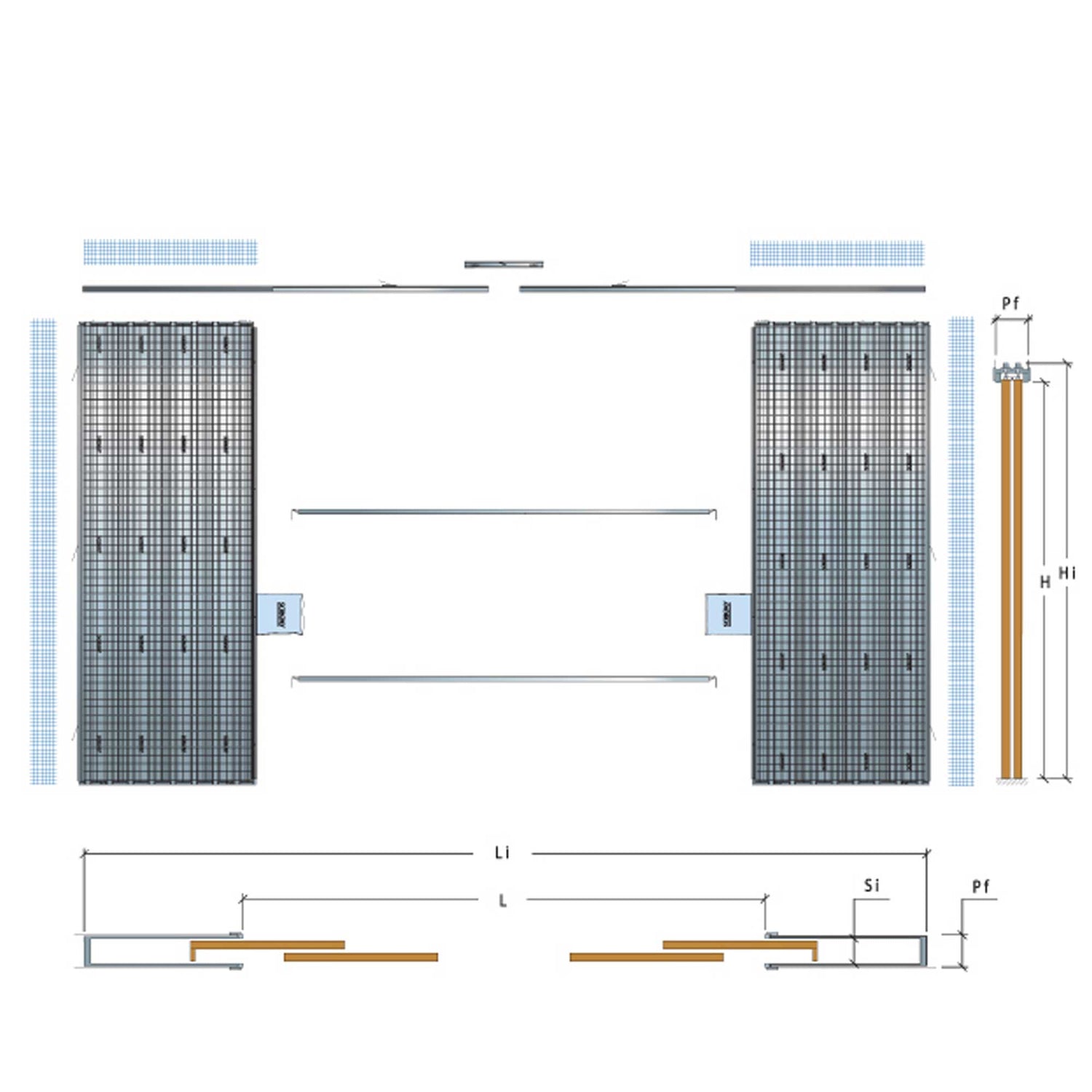 4. Installation polyvalente:Convient pour cloisons de séparation en plaques de plâtre avec une épaisseur finie de 190 mm, le contre-châssis est compatible avec les portes de la ligne Granluce et supporte un Poids maximum de 120 kg par porte.