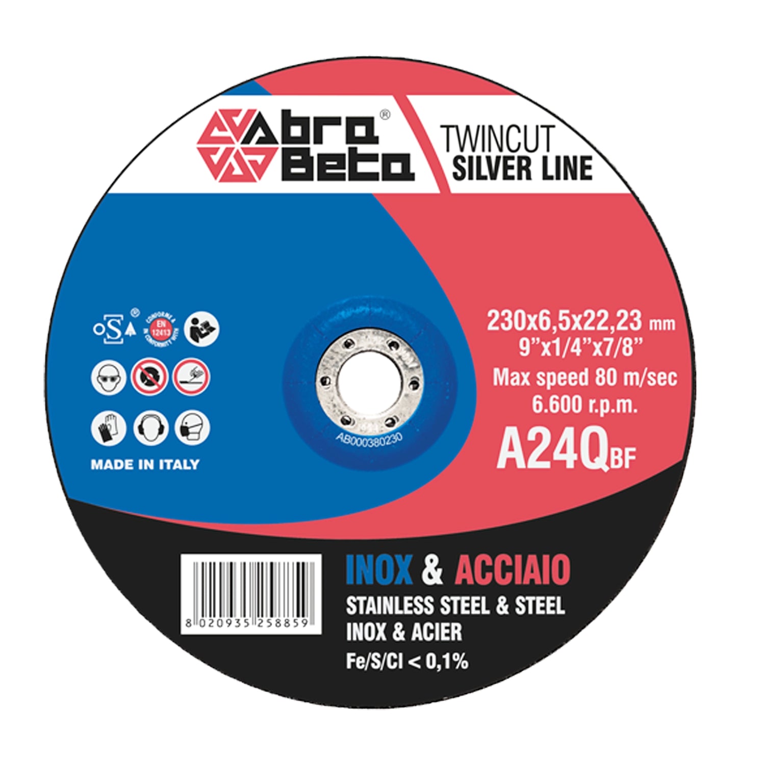 Disque de meulage Abra Beta A24Q, peut être utilisé pour l'ébavurage des aciers, des aciers inoxydables et des fontes.