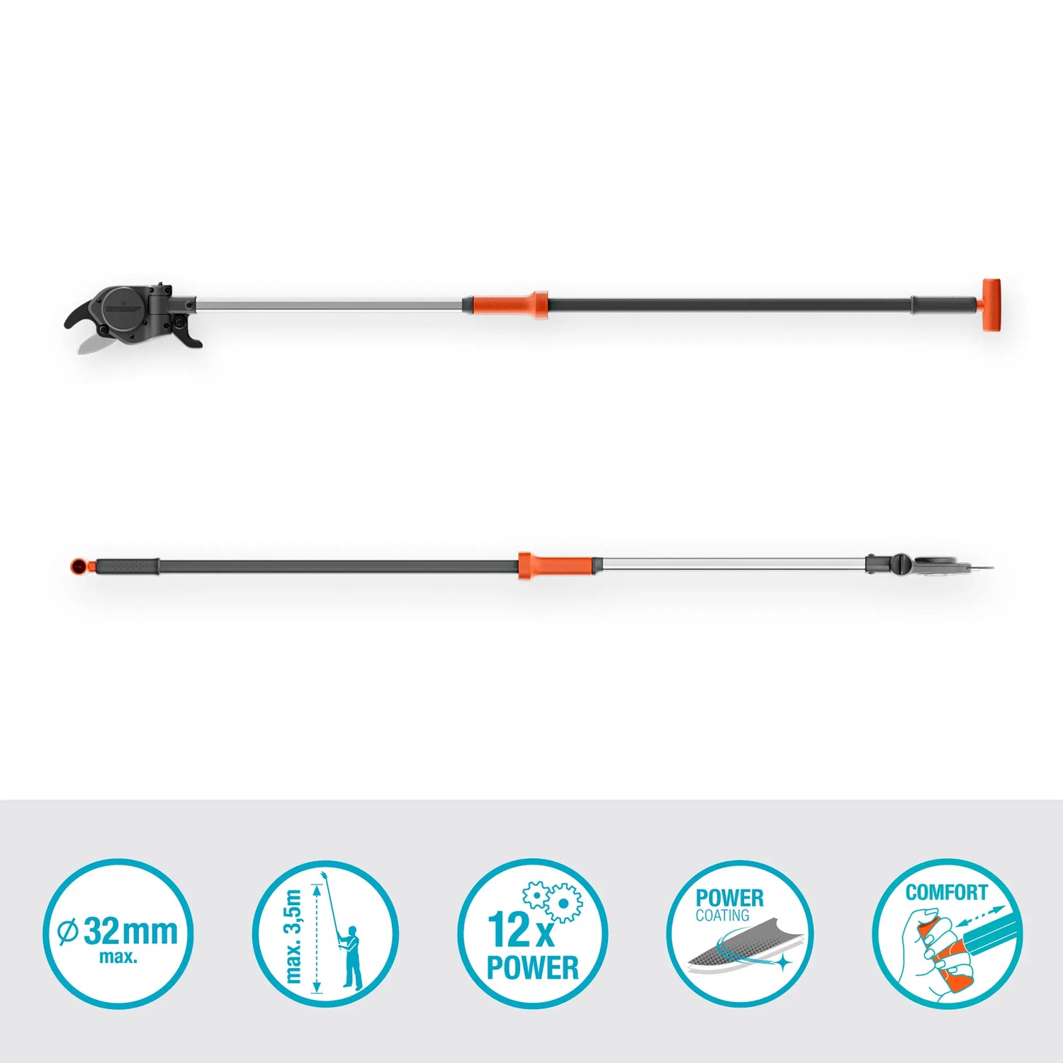 Là Lanceur de sécateurs Gardena StarCut Pro S C'est l'outil idéal pour taille sans effort d'arbres de petite et moyenne taille.