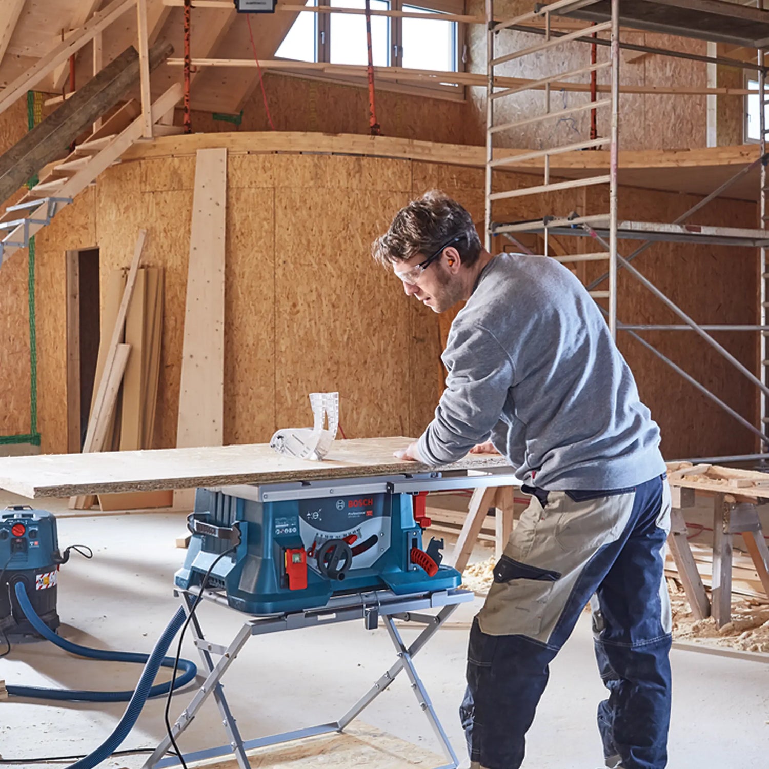 Conçu pour les professionnels exigeants, ce banc se distingue par sa structure compacte, pliable et légère, idéale pour une utilisation avec la scie circulaire à table Bosch GTS 635-216.