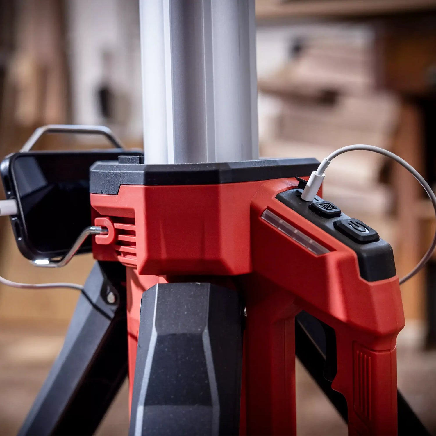 • Compatibel met standaard: In hoogte verstelbaar van 1,1 m tot 2,2 m, de lamp kan dankzij de geïntegreerde haak op een standaard worden bevestigd of op een statief met een 1/4” aansluiting worden gemonteerd, ook compatibel met andere apparaten zoals lijnlasers of videocamera's.