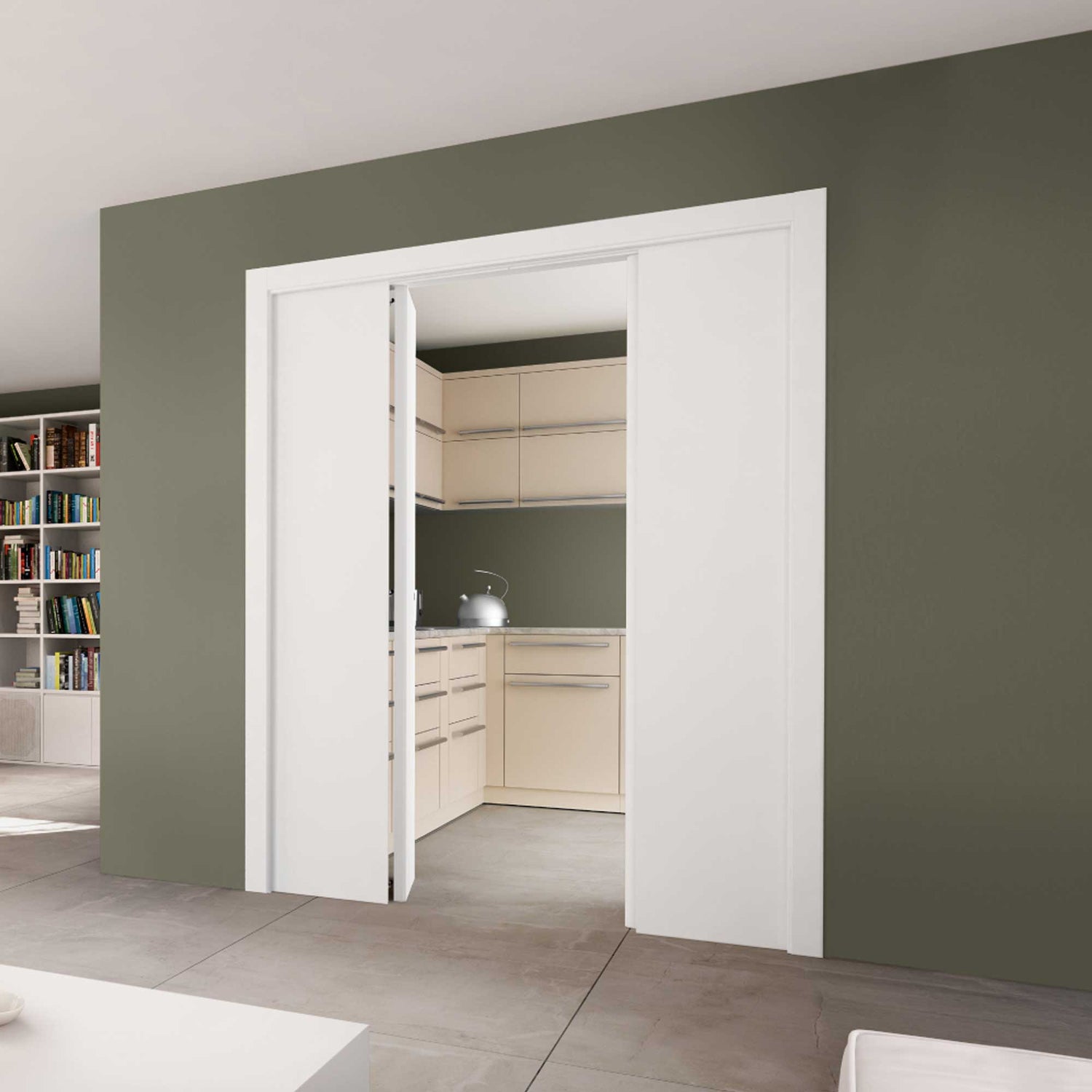 LE'Porte Trésor Pure Scrigno C'est une solution parfaite pour ceux qui veulent une porte coulissante élégante, polyvalente et entièrement personnalisable. Fabriquée avec des matériaux de haute qualité, cette porte s'intègre parfaitement dans n'importe quel environnement grâce à la possibilité de choisir la couleur de finition directement dans la palette de couleurs RAL, assurant une intégration harmonieuse avec le mobilier et les murs.