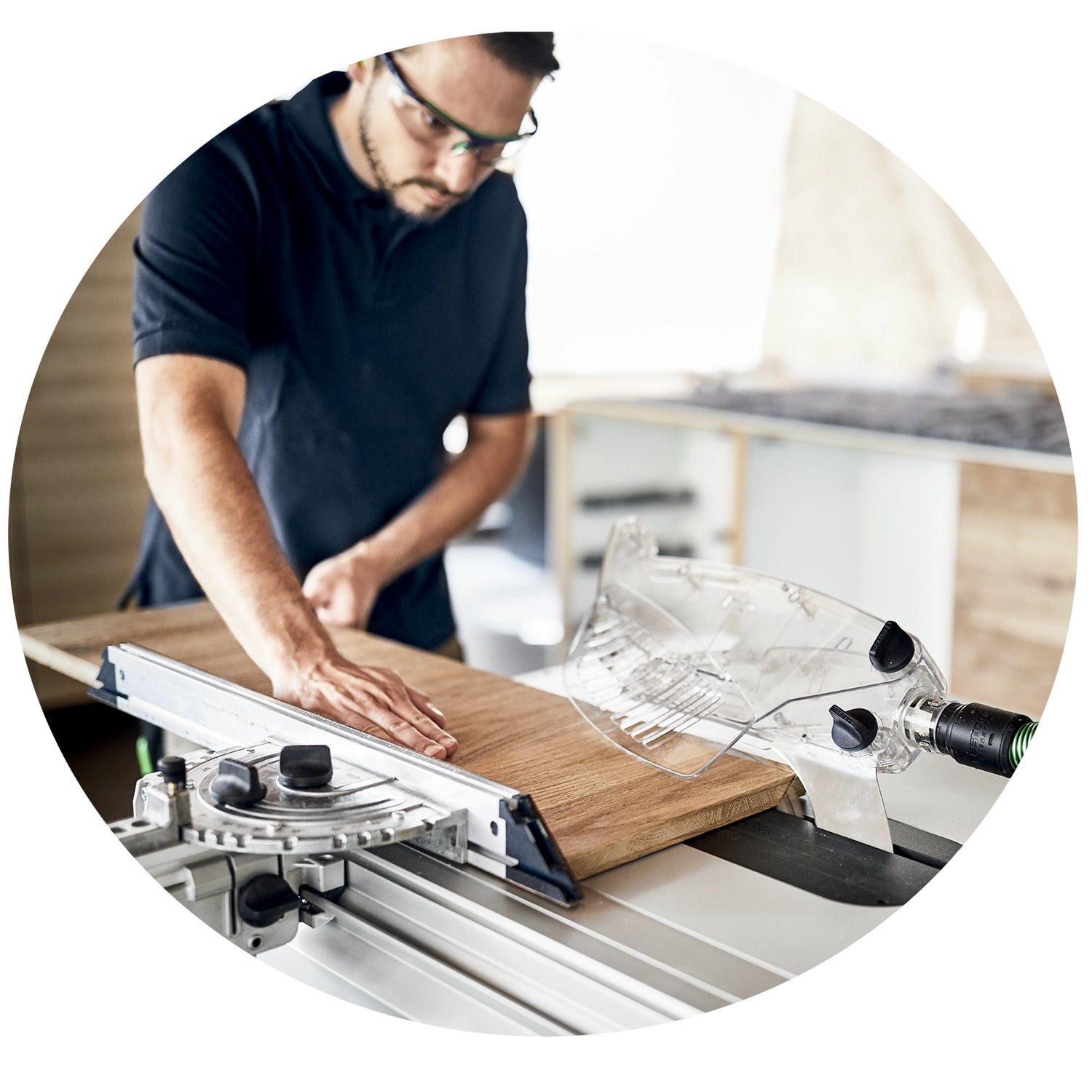 Chaque année, environ 13 000 accidents du travail surviennent dans les métiers du bois. Environ 22 % sont des accidents graves (Statistiques italiennes INAIL (Institut national d'assurance contre les accidents du travail) Années 2015-2017). Avec la nouvelle scie circulaire de table TKS 80, le risque de blessures graves lors de l'utilisation est réduit. Pendant que vous vous concentrez sur votre travail, nous pensons à protéger votre outil le plus précieux : vos mains.